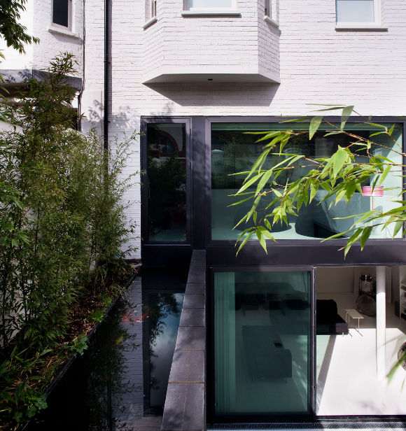 Mews 02 is a single residence set in Belsize Park. The owners, a musician and his designer wife, wanted this existing mechanics garage to be converted to a 4 level family home, with the emphasis on the entertaining areas and with the ability to create private compartments over for sleeping.