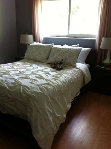 On the bed is my beloved pit bull Crystal. She’s a little spoiled.