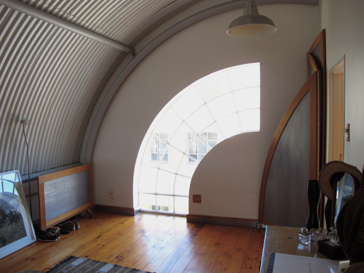 So my boyfriend and I are wanting to make a little dead-space/old bedroom in our house into a home-office. We live in an awesome loft apartment, and it has one really unusual feature – a curved, corrugated roof. This makes it a little difficult fitting things into the mezzanine level. We want to keep the space simple and clutter-free as our mezzanine level is all open plan and our bedroom and 2 bathrooms are up there too.