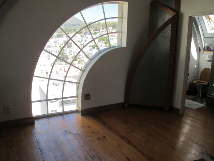 -It has a beautiful curved window with an awesome view that lets it a lot of light. (If we could come up with some sort of blind system for this window we would be killing 2 birds with 1 stone!)