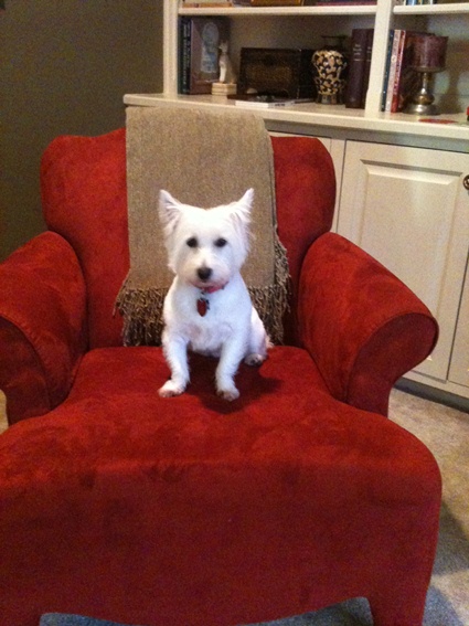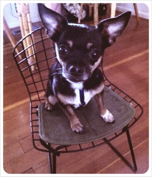 This is Chico, our proper Chihuahua on my favorite chair. He requires comfort and luxury at all times. We are more than happy to oblige.
