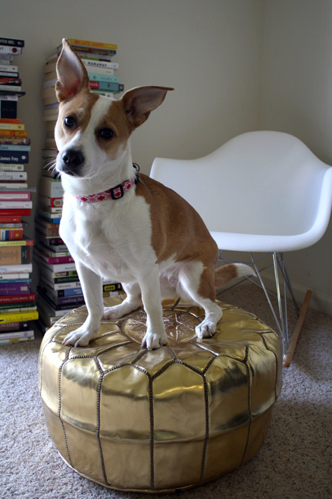 Here is Callie, my corgi/jack russell mix posing on a Moroccon pouf – she’s quite the little ham and I’d say she has pretty good taste.