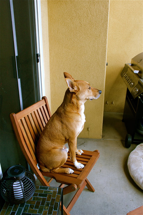 This is Fonzi. We adopted him from our local shelter and things have never been the same since. We can usually find him lounging on our bed, but he recently discovered that he could sit on the patio and watch the world go by! 🙂