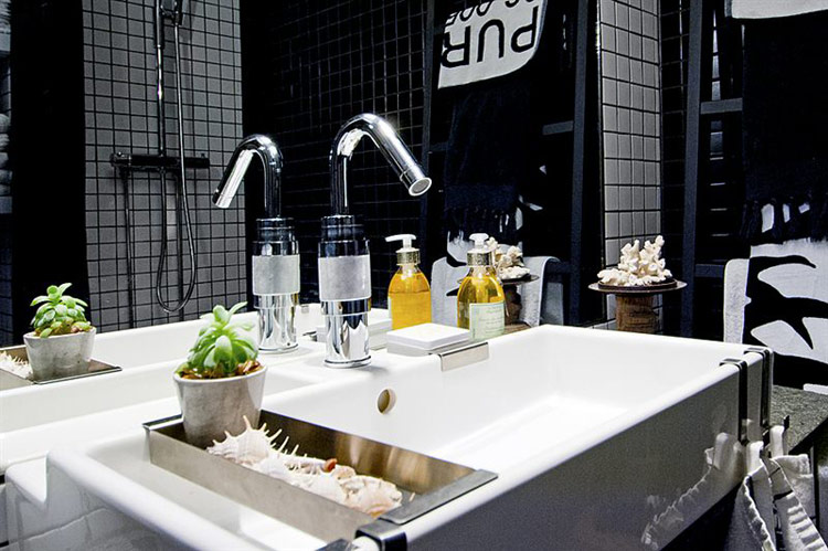 Cool black and white combination. Use wood truly highlights the space, love it! Let's 'pin' this. 🙂