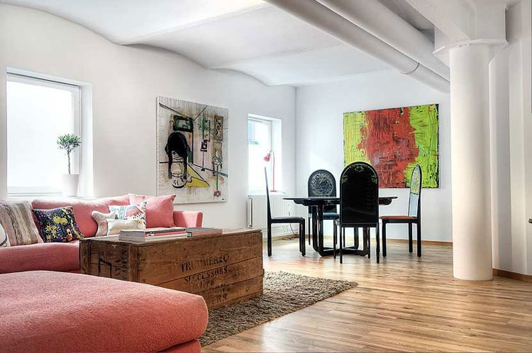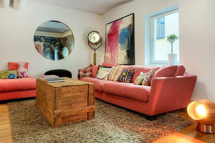 I’ve spent the last couple of days hanging out with my inlaws who are visiting from P.E.I and shortly I am heading out to Montreal for the day with my sisters and mom to shop for clothes. All that to say I didn’t have much time to get a post ready for today. My twin sister sent me a link the other day to a Swedish apartment she found on Stockholm/New York based real estate firm Eklund. The decor is quirky which I love and it also has lots of bits of colour which I am also a fan of (despite my constant appreciation on here for neutrals). You really can’t go wrong with a red Smeg. It makes any kitchen come to life.
