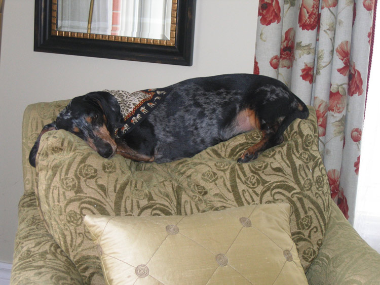 Meet Cléo, a sweet daschund I adopted from a shelter 12 years ago. Her greatest talent: finding just the right spot to cuddle up. She knows her stuff.