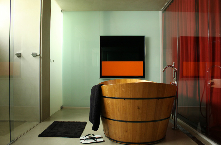 Haha, definitely a bachelor pad. Particularly with the red curtain divider for the bathroom