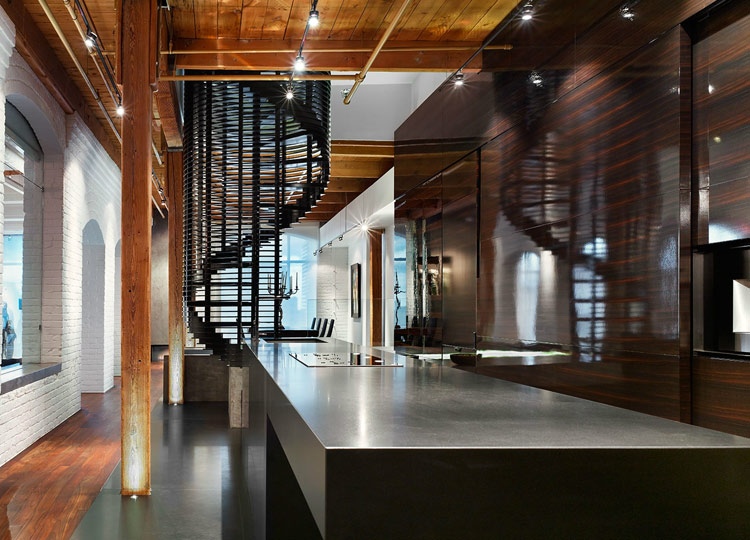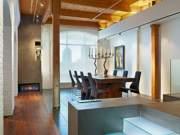 I recently stumbled upon the portfolio of Johnson Chou, and architecture and design firm based in Toronto and was very intrigued by this penthouse: Situated in a turn of the century candy factory, this 2700 SF loft penthouse suite was one of Toronto’s first residential adaptive re-use projects of its kind. The owner, an avid sportsman with a penchant for traveling to remote areas to camp in the wilderness, requested a residence that evoked, within an urban context, a sense of the landscape he loved so much. What I love about this loft is the blend of modern and rustic elements. That juxtaposition gets me going every time.