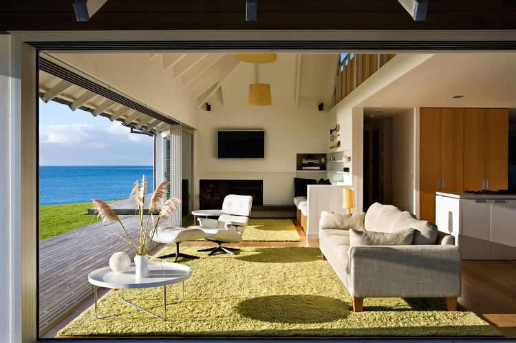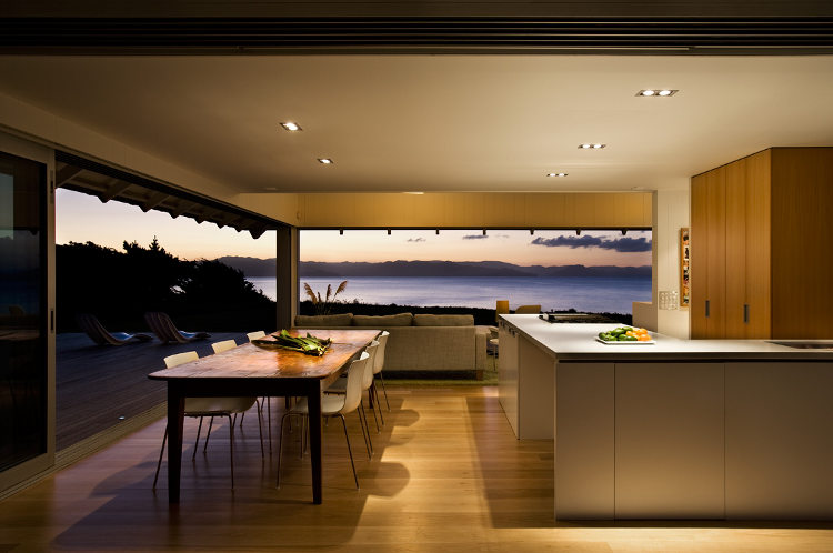 I’m slowly coming to the conclusion that New Zealanders build the best beach houses. This is a big concession coming from an Australian. We pride ourselves on understanding the beach culture and our architects are some of the world’s best but it just seems that the Kiwi’s just do it better with the bach. For those of you who don’t know bach is the kiwi for beach house. But it means more than just the building. It’s the memories. It’s the summer days and the salt spray and the barbeques and the fun. It’s about summer rituals and roughing it and making do and fishing and wet swimsuits and sandy towels. Even when it’s a luxury bach. It’s stunning but it is still not overly precious. After all it really is about the sand and sea and the view and those long days with family and friends. A series of connected pavilions on a dramatic site at Kuaotunu by Auckland based architects Crosson, Clarke, Carnachan.