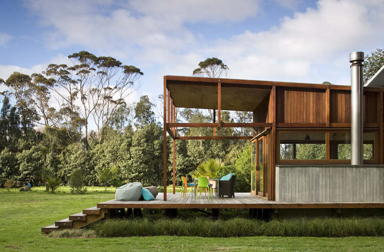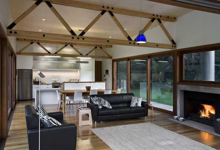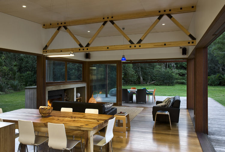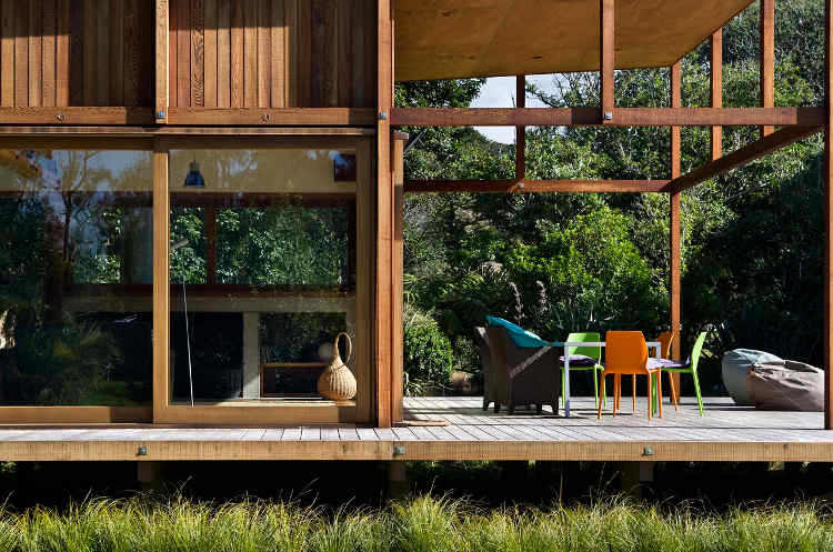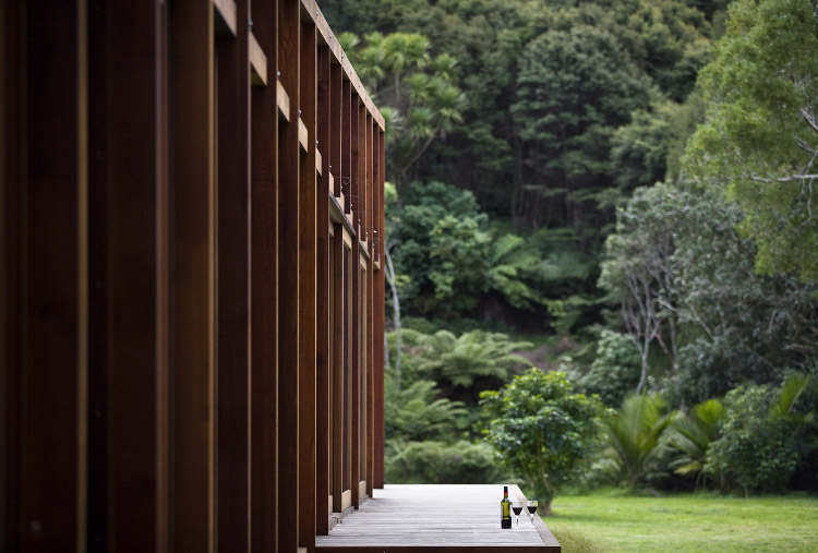 Nestled amongst the trees on Barrier Island, New Zealand is this sustainably built home by Crosson, Clarke, Carnachan. Opening out to the site it embraces the landscape, borrowing its beauty. It is a simple home but its simplicity sits strongly with the majesty of the surrounds. External walls mimic the tree trunks while walls of windows dissolve the barrier between inside and out.