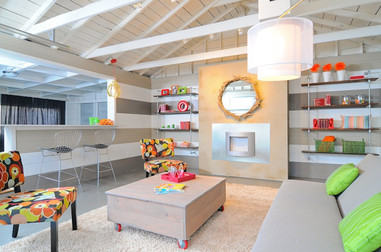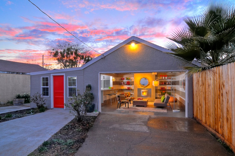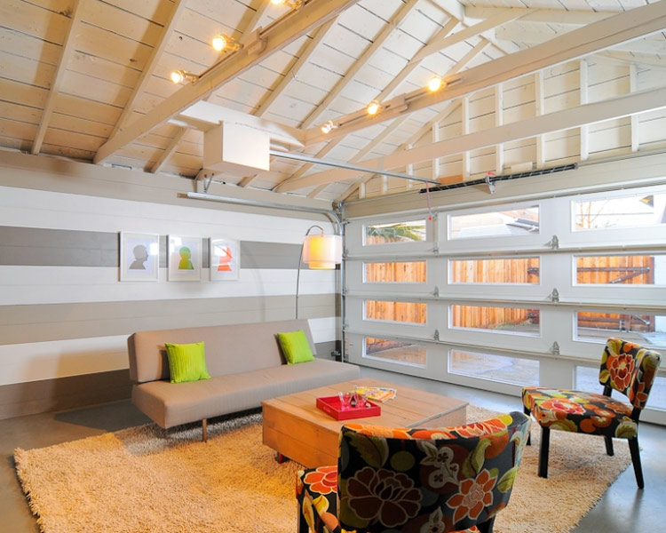 Kerrie Kelly is an interior designer based in Northern California whose designs caught my eye while surfing the internet. Kerrie and her team of designers at Kerrie Kelly Design Lab have got what it takes – with various design styles in their portfolio they’re pretty great at just about anything – from a bit traditional to more modern/contemporary. Kerrie and some of her projects may look familiar as she’s been a featured designer and has consulted with several DIY and HGTV Network’s “Crashers” shows. The garage conversion below (after the jump) is an amazing transformation – and it had me laughing. You NEVER see garage conversions up here in Canada. The garages of Canadians are precious and sacred spaces that save us from having to scrape ice and snow off our cars (which on bad days can take a half hour).