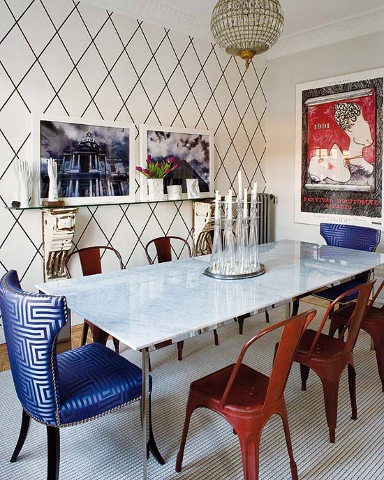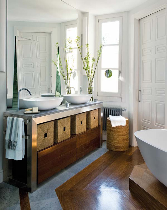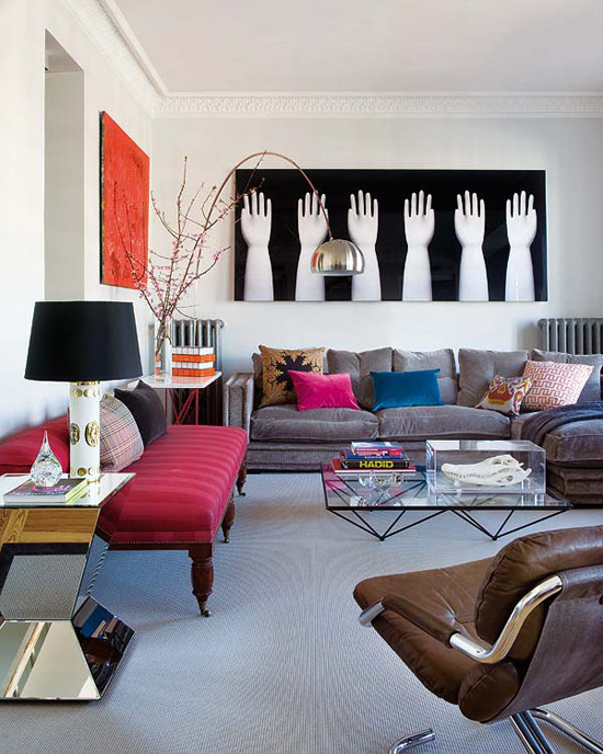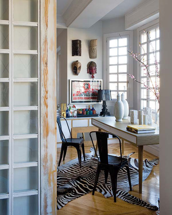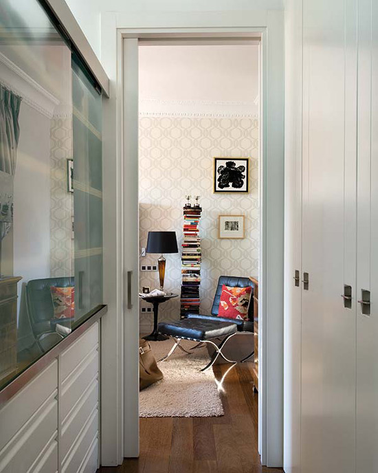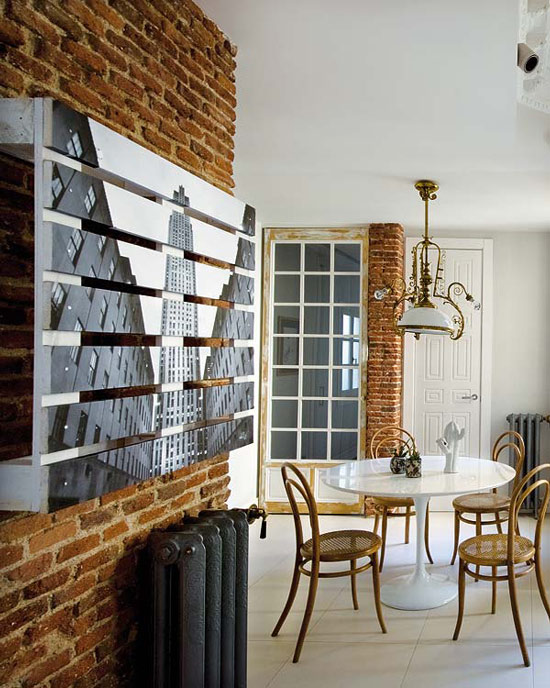 I’m trying to decompress this long weekend, and enjoy some time not glued to my computer screen like I usually am. Yesterday I spent the day at my sister’s cottage and we plan on doing the same Monday. Today is going to be filled with chores and errands (including hopefully the pick-up of a table I selected as payment from an advertiser – can’t wait!) and finishing the painting of shelving I took from the cottage last weekend that I was thinking would be awesome shoe storage in my dressing room. Photos to come on both of those eventually. Needless to say I didn’t have much time to get something ready for today and because I don’t want to leave you guys with a post-less Sunday, how about a cool apartment in Madrid I found at Nuevo Estilo. It was built in 1914 and renovated by architect Borja Puras Vázquez de Prada. I love how the details from that period were maintained and the eclectic mix of old-world and modern furnishings creates such a unique, refreshing look.