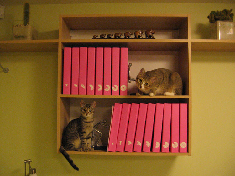 Here are two interior details – Silva and Nevis, both of which my friend Kristina took from an animal shelter and keeps in her apartment, in Vilnius, Lithuania. How do you like the way folders are numbered?