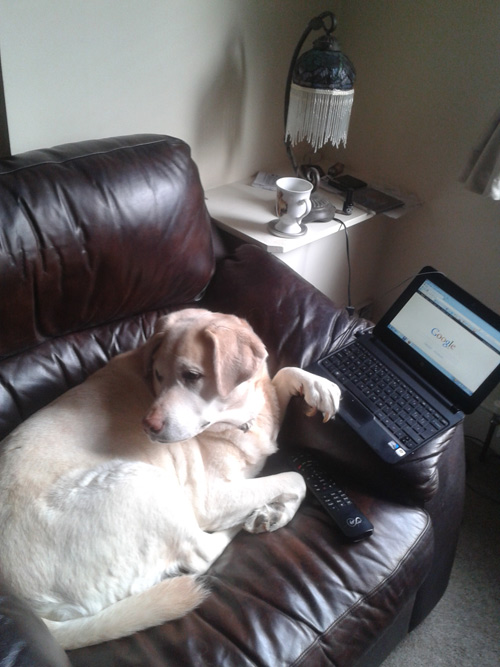 It’s my doggy, stealing the leather chair (as usual) but she’s also browsing the web!
