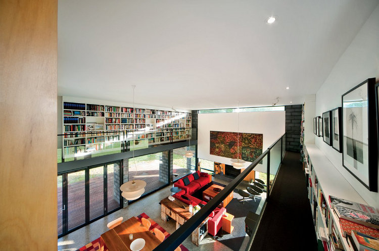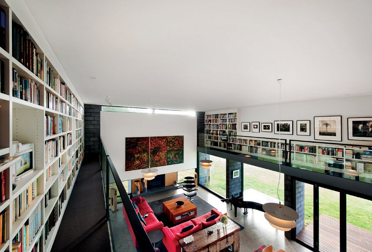 What a stunning exterior – and I love the upper-level gallery/library concept. Not only is the home itself grand, but the photography is superb. Thanks for this one!