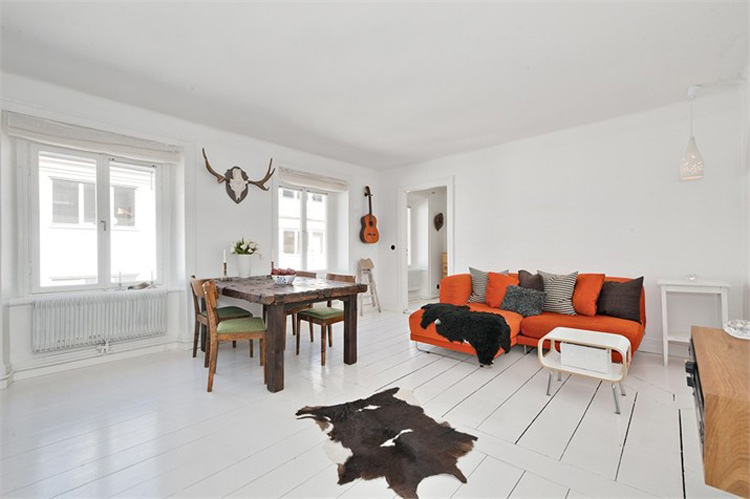 I will never tire of an all white home. Especially when there are splashes of colour involved like the orange modular sofa!