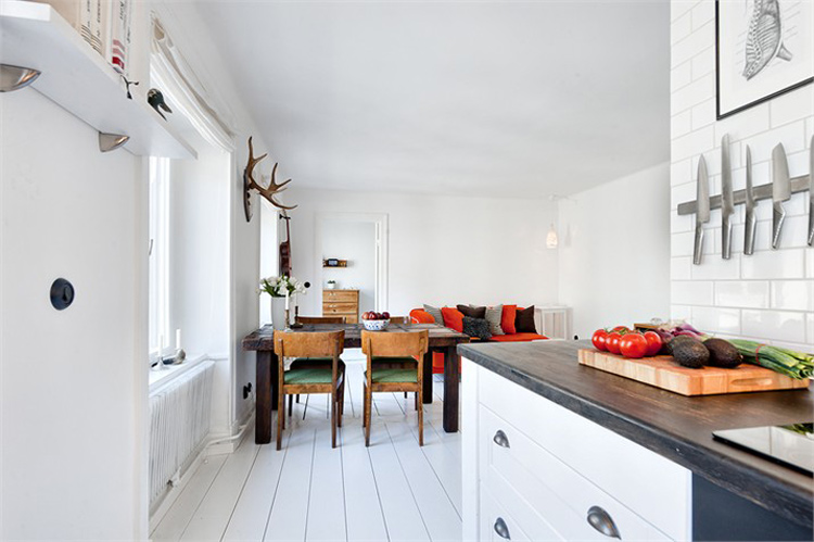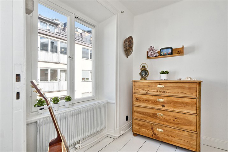 Dan emailed us with a link to his Stockholm apartment that is on the market (apparently right in the block where the Millenium movies were shot). It’s very small but he’s done such an awesome job giving it character and not overcrowding it with stuff (although perhaps removed for these listing photos, but I’m thinking we give him the benefit of the doubt). And of course, it’s all white, as the best Scandi homes are.