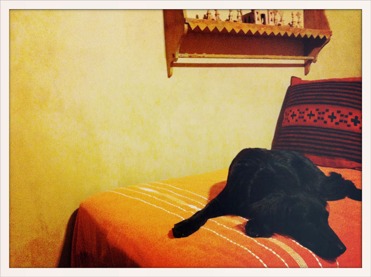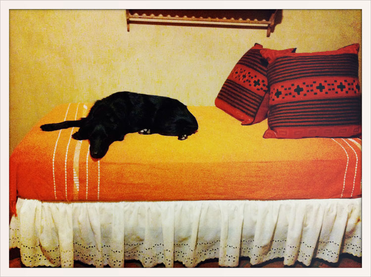 Buckley is a royal pet. He is truly an elegant creature, always perching perfectly on each piece of furniture he rests on. Here in Santa Fe on my mothers day bed, blending in with the mood of the adobe room… I love how deeply black he is against the orange, the lighting was so yellow it casted this beautiful warm tone to the room.