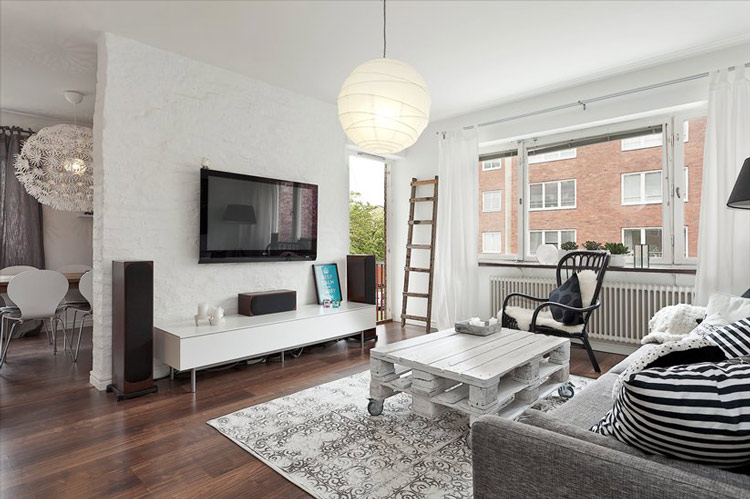 Back in May of last year we shared with you Iris‘ apartment in Sweden. Turns out she’s selling her completely renovated apartment because she bought a house – that also needs alot of work. Her realtor took some fantastic photos (listing is here) and it looks like Iris tweaked some of her decor since last year. It’s amazing – and I’m in love with the flooring! She is going to have no problems selling it. ๐