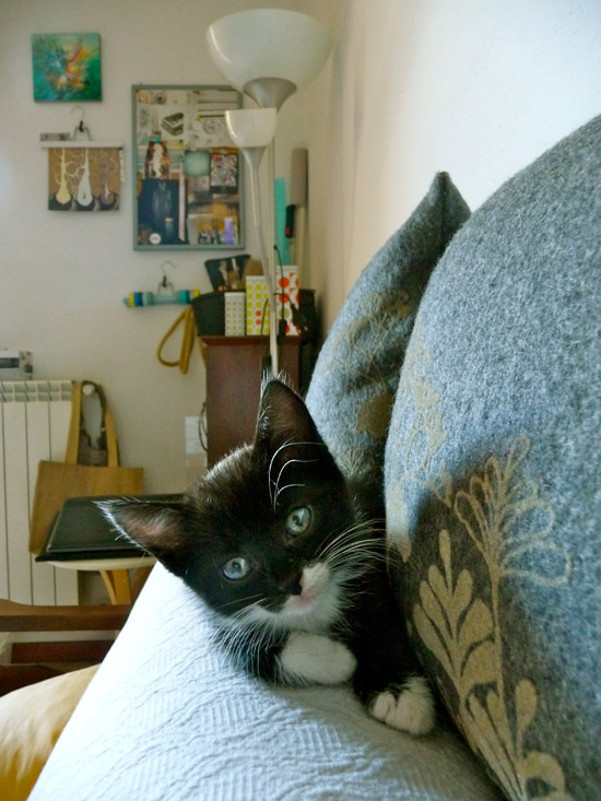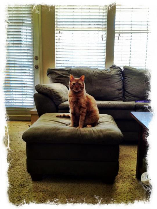 This is Sam, who is a holy terror, but he’s looking very serene in this pic, sitting on one of his favorite sleeping spots.