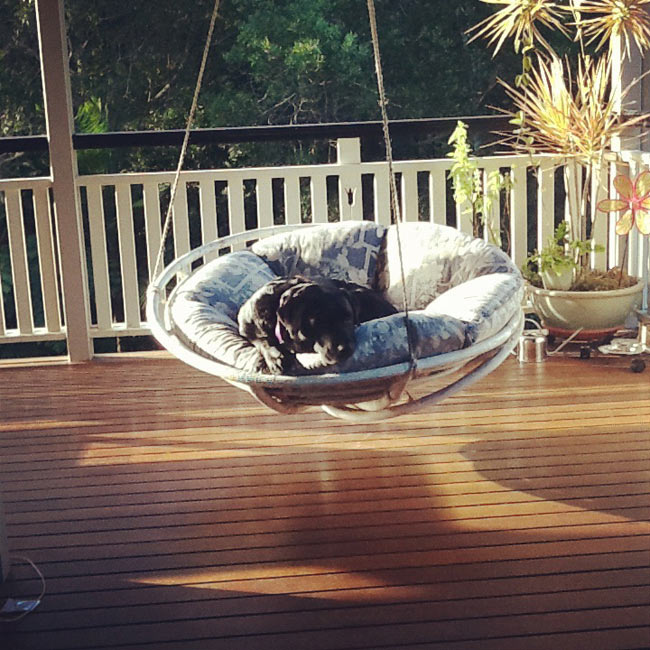 This is my 8 year old Labrador “Jet” kicking back in our Papa-san chair on the veranda of our Queenslander.