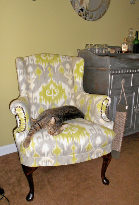 This is Hammie stretching out on my newly-reupholstered club chair (my first upholstery project!). Glad she seems to love it just as much as i do.