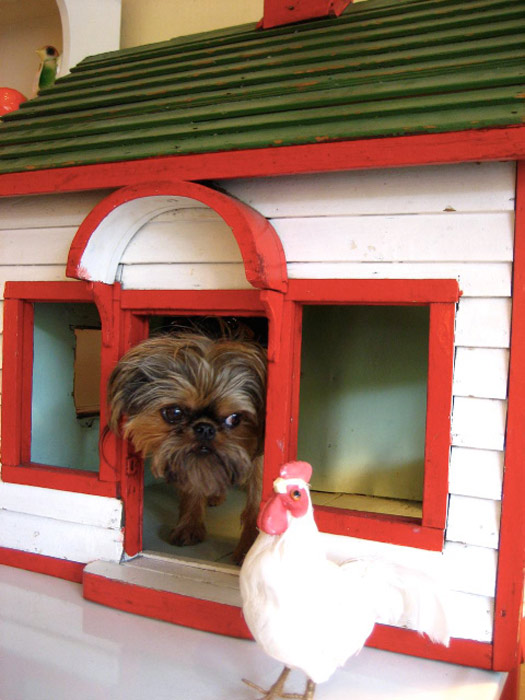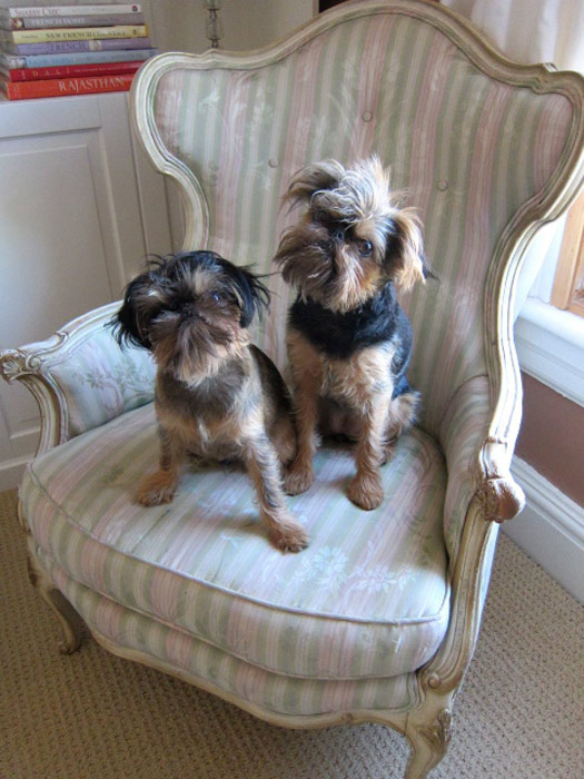I own a vintage furniture shop in Toronto called Hawk Eyes. I have two little Brussels Griffons 5 years and 1 year old (Talulah & Oscar Ozzy Wee Man). They are well known on the Roncesvalles strip as they spend a lot of time in the shop and on furniture!