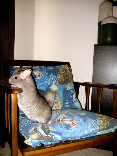 (In case you aren't avid watchers of Tumbletown Tales, a little show featuring live hamsters, guinea pigs, rats, bunnies, etc., in realistically-furnished situations discussing and living life like humans. And every show, there is a chinchilla who appears in the seen and proclaims — Chinchilla! Chinchilla!)