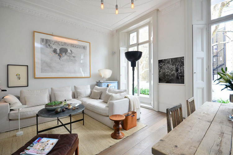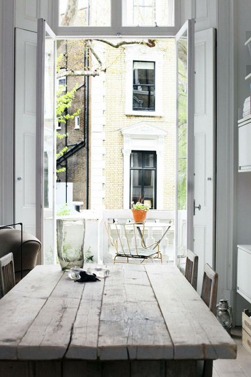 A huge thanks to Marie-France of Montréal for sending us a link to this breathtakingly fabulous flat that was for sale on Foxtons (it has since sold and was listed at a gotta-love-London price of £1,295,000). It’s a first floor 1 bedroom flat with wood floors, a sunroom and private terrace. The architectural details are worth the hefty price tag – I am drooling over the windows. The casual-vintage decor, in my humble opinion, is pretty close to perfection for the space.
