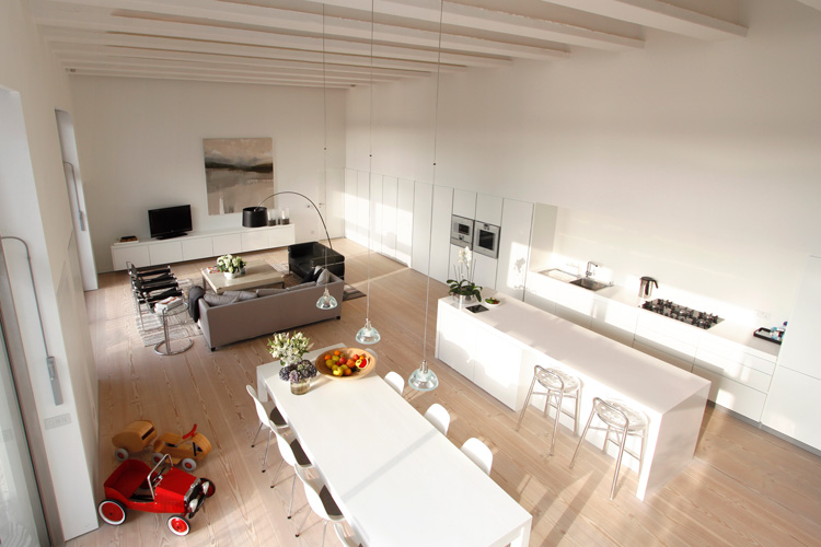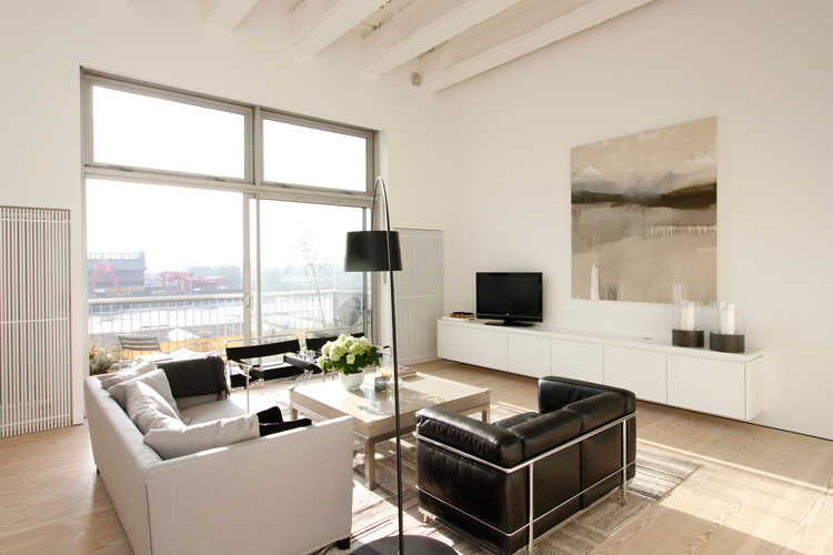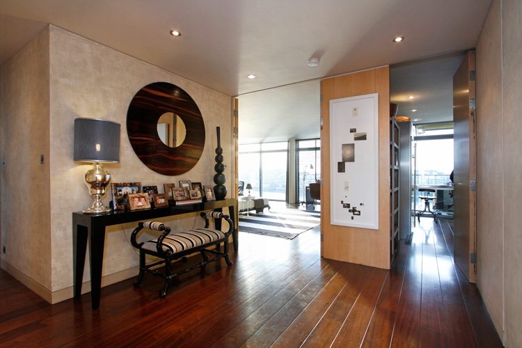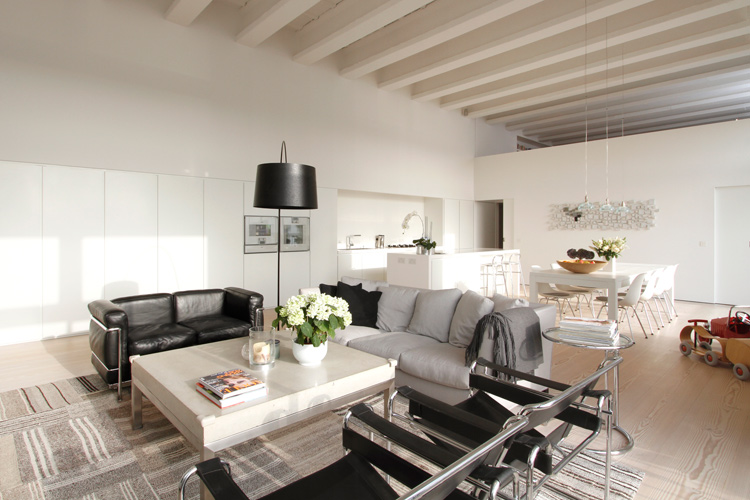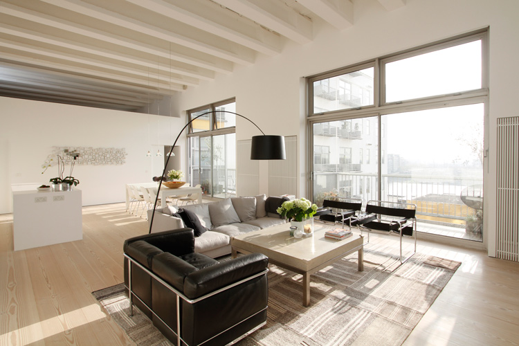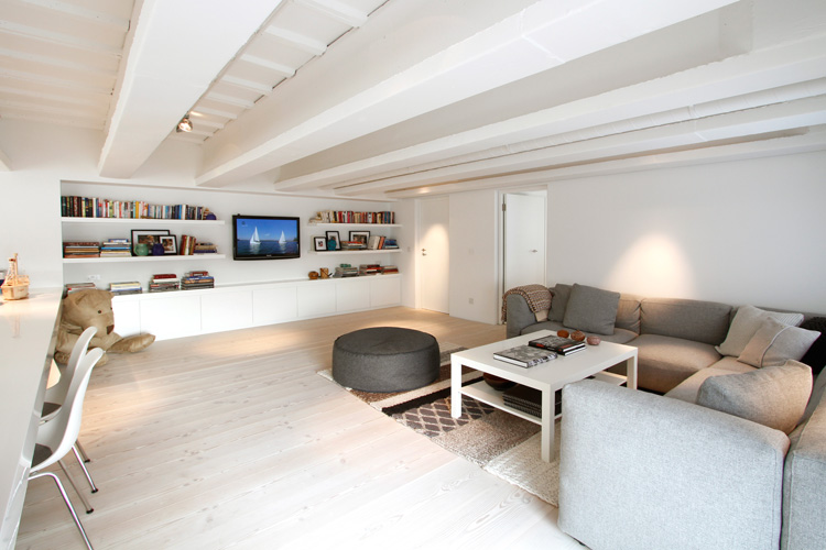 Jo isn’t the only one who enjoys stalking real estate sites. Savills is a great resource for spectacular properties in the UK and abroad (Savills is HUGE. They have more than 200 offices and associates throughout the Americas, the UK, continental Europe, Asia Pacific, Africa and the Middle East). I came across two properties that caught my eye (so far, as I could spend hours on this site). This first one is seriously knocking my socks off. It’s a 2,885 sq ft 4 bedroom, 3 bathroom apartment located in Fulham, London. I adore the layout of the living/dining/kitchen – how they all blend seamlessly and then OMG those windows and soaring beamed ceilings. I think it’s a genius idea to have the kitchen cabinets continue into the living room. It would be awesome as a library if you didn’t want open shelving and preferred a minimalist look, and then your books won’t get dusty! (P.S. Note the to-die-for Douglas fir flooring). The designer furnishings in neutral colours are just the icing on the cake. I also must give a nod to the lowered ceilings in the media room (actually a mezzanine) – perfectly cosy. (Link here)