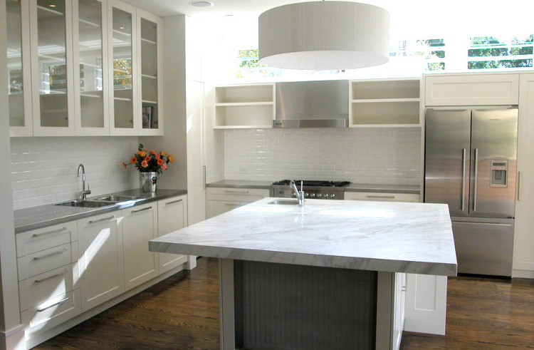 I love the last kitchen with the stainless steel appliances. Simple but very nice. The glass doors are a really nice touch.