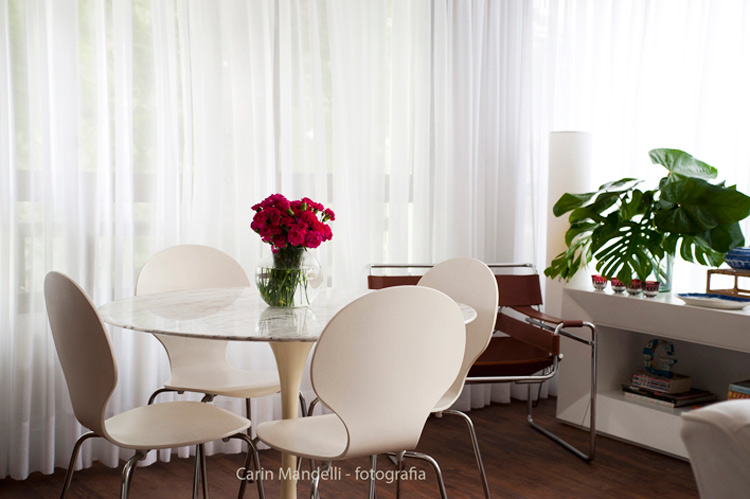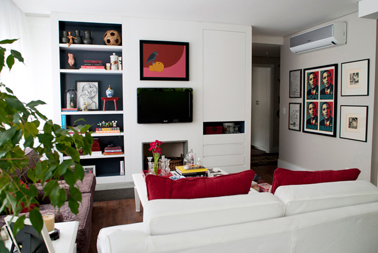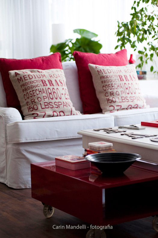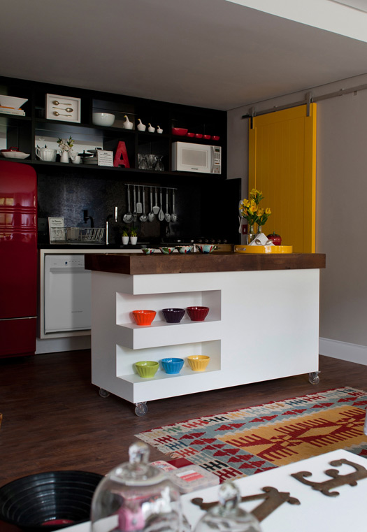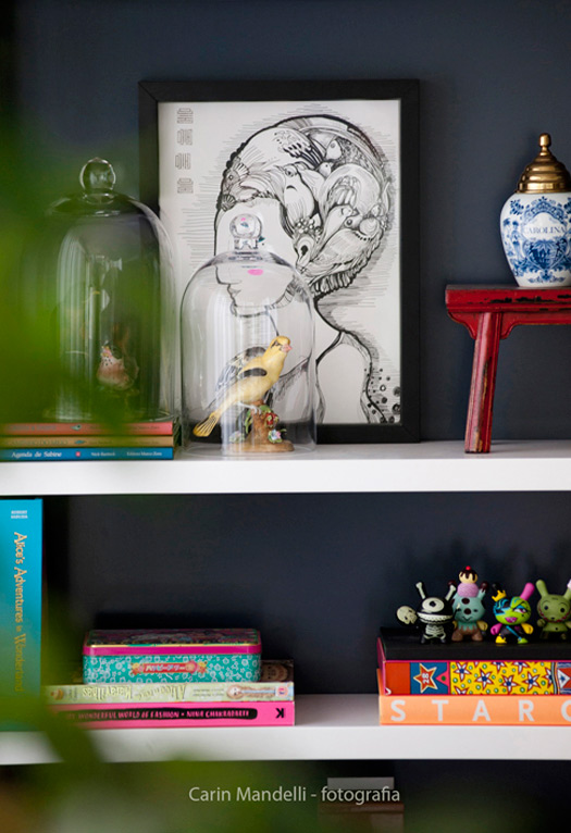 Carolina had sent in an entry for a pets on furniture recently (her pooch Ella is the first pet featured here), and thought our reader’s would like to have a peek into the rest of her home. Here is a bit of info: It’s been 6 months since I moved and every corner in my place has been planned with love. I’m a graphic designer and a typography lover, so my home kind of portrays my personality. I live in Porto Alegre, in the south of Brazil. The apartment was a “group project” between the architects Luiza Kroeff and Claudia Neumann, who designed the furniture and me and my mom Maria Araci, who worked on the interior design. Carolina’s love of typography is evident in her home, and her graphic design background too as her apartment has great punches of colour and impact with white or dark walls that make furniture and artwork pop.