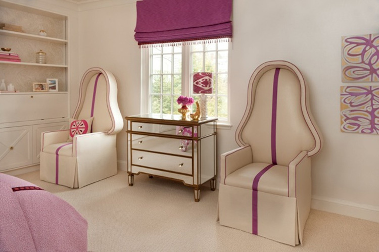 A fresh, hip take on traditional decor. Annsley Interiors, comprised of Annsley McAleer and Lindsay Nason, is just that. These ladies are not afraid of mixing up LOTS of colours and patterns to really liven up traditional furnishings. They create eye-catching and whimsical spaces with great attention to detail. I must add that I am in love with the banquette below. How fantastic would that be in a dressing room!