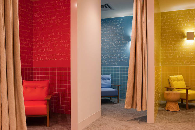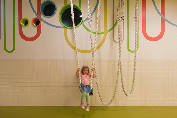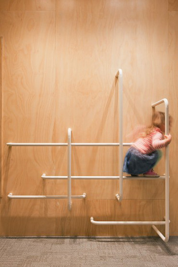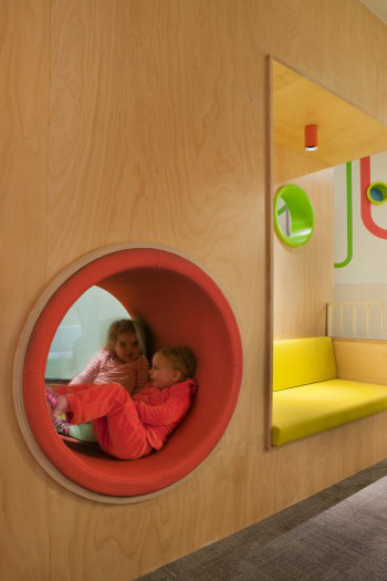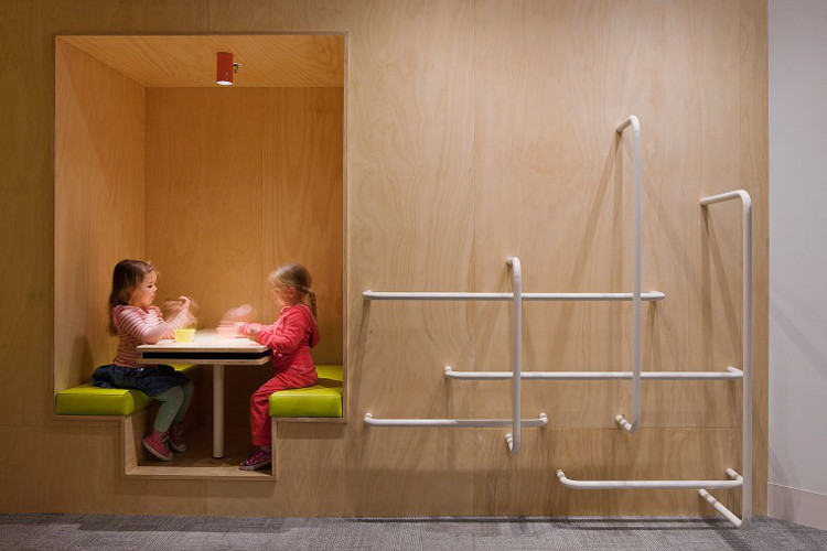 It’s fun and fab, a touch of practical luxury and leisure in an often utilitarian and frankly boring space. No “tuck them away way down the back and forget about them” but a celebration of young children and their parents, a welcome respite from the bustle of the crowds. (Photography by Shannon McGrath.)