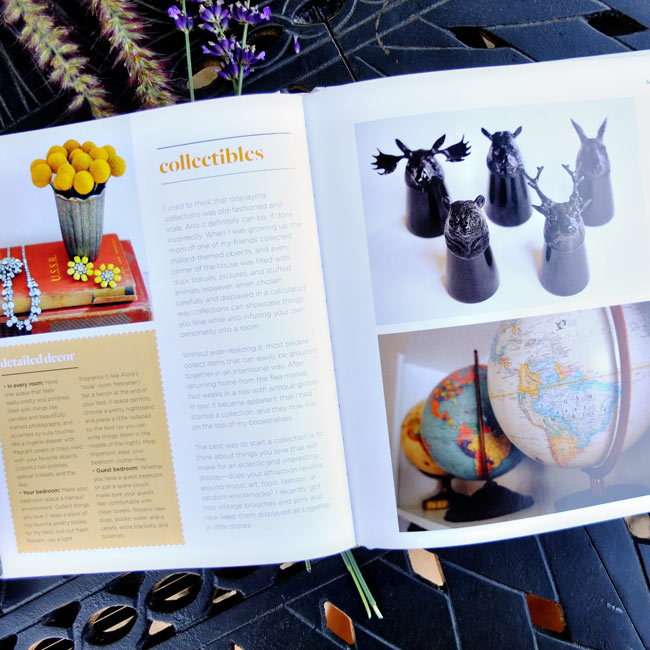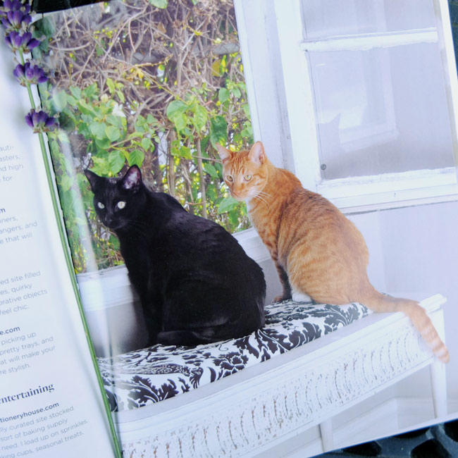 I got my hands on a new book recently so I thought I’d do a review of it today for you all. It’s called Cupcakes and Cashmere by Emily Schuman, and it is based on her lifestyle blog, which I happen to have been reading daily for at least a year now. This book is only somewhat related to interior design but I quite enjoyed it so I thought I’d feature it with photos of the more design-y topics. 🙂 Cupcakes and Cashmere includes DIY projects, organization tips, party-planning ideas, beauty how-tos, and delicious recipes for food and cocktails (a few I want to try ASAP). It’s separated into seasonal chapters, and within each Emily divulges her signature “Five Things” relating to beauty, style, at home, and food & entertaining. You can purchase the book at Amazon, Abrams and Barnes & Noble. Here’s a little peek (of course I had to include a photo I found at the back of the book of her 2 cats).