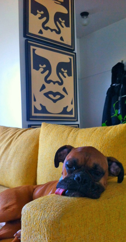 This Pearl’s BFF Rocky (boxer). He is always sleeping on the furniture with his tongue hanging out!