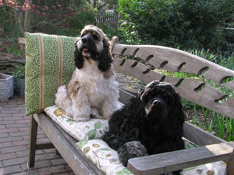 Kizzy and Ouija always enjoyed bird-watching and launching squirrel chases from their bench in the garden.