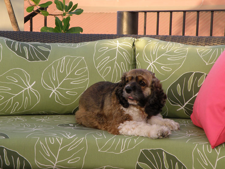 Kizzy enjoys basking on her roof-top terrace, always alert for geckos.