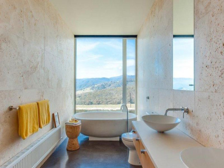 Set in Victoria’s alpine high country is Solterra, a contemporary home of rammed earth, ironbark and expanses of glass perfect to frame the expansive mountain views. Two hours from Melbourne and 30 minutes from Mount Buller’s ski slopes it is perfect for winter fun or summer escapes. Cows wandering past the infinity edge pool is my idea of the neighbours dropping in. Real estate stalking in the highlands. Here while the link lasts.