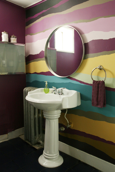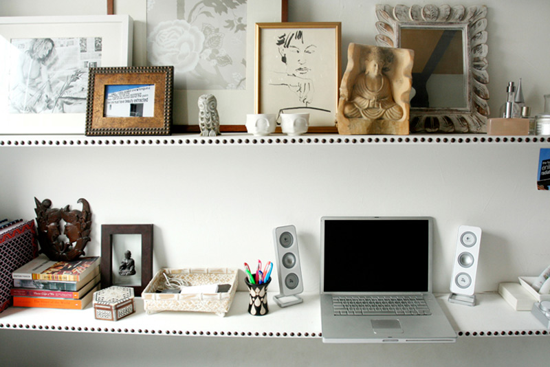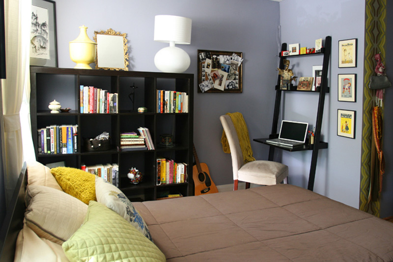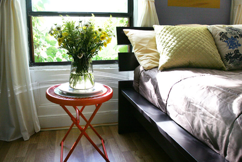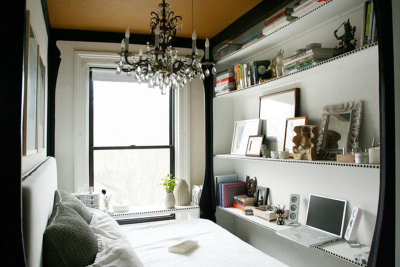 Jen Chu is from San Francisco currently residing in Brooklyn, and is an Art Director for Project Runway and has even worked on a couple J-Lo videos. I spotted her in the latest issue of Design Bureau mag and checked out her portfolio. I love her interiors as they are, believe it or not, for NORMAL people who do not have unlimited budgets. Her own apartment is super small and she has done an amazing job with it (the first 5 photos below are of her itty bitty bedroom and bathroom). It’s great to see how this half lives too. 🙂