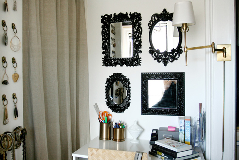 She is so smart with space and I love how she used those wall fixtures to display her jewelry!