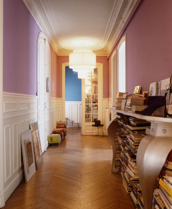 What happens when a creative meets a creative? Definitely something creative! Photographer Enrique Menossi captured shoe designer Rodolphe Menudier‘s Paris apartment and it is boho bliss. Amazing architectural detail married with mid century classics, bold colour and just a touch of creative clutter. Even piles of books look good when they live in a lilac hallway in Paris.