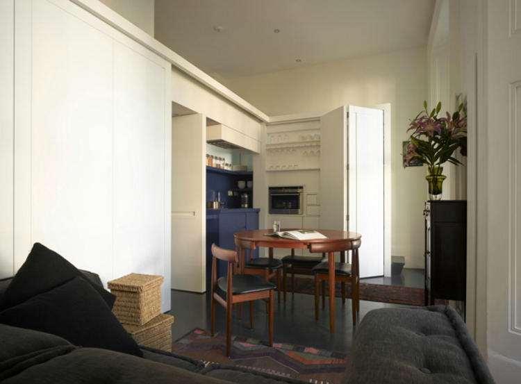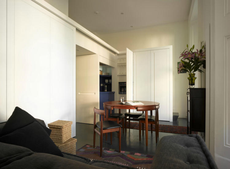 Innovative use of space, fluid, adaptive. It’s open and shut. In and out. Across and away. Changing over time and across needs. Simple, clever, stylish. London-based architectural firm Openstudio. Of course you will remember the last project here. “Le Cabinet”, Leinster Square won the Apartment Therapy Award for the “Smallest Coolest Apartment 2007”. A perfect little puzzle box of an apartment. A mere 26 square metre footprint. Now that is clever!