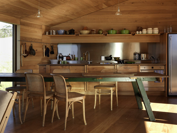 An iconic building in the Australian built vernacular. The shearer’s quarters. A home away from home for the itinerant workers who trekked from one sheep farm to the next. This new building sits beside an existing historical home where the original shearer’s shed stood before fire destroyed it. When it came time to rebuild the owners turned to John Wardle Architects to recreate and reinterpret the space to accommodate workers, family and friends. Galvanised iron externally, timber internally, the bedrooms lined with old apple crates. This modern twist on the traditional shear’s shed won the The Australian House of the Year at the Houses Awards. The Shearer’s Quarters, Tasmania.