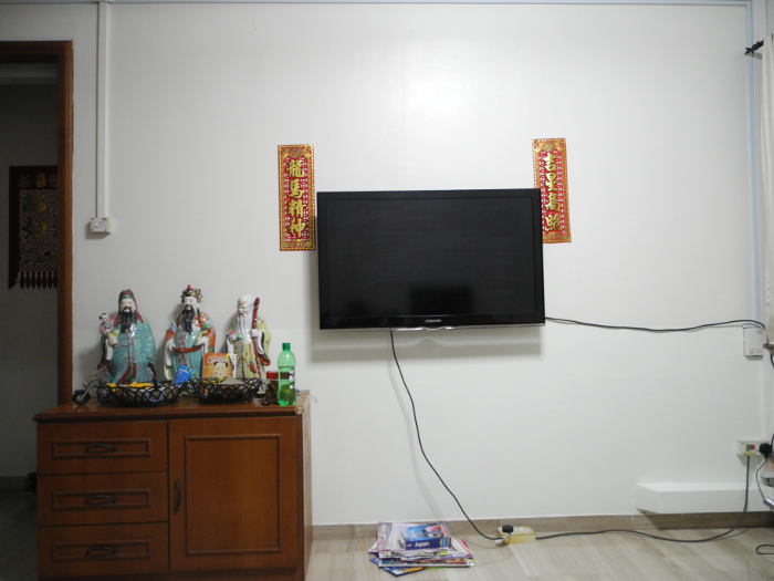 It’ll be really great if u guys from the Design Crew can help me with my woes! We are giving the house a make over but don’t know what to do with it/don’t know how or where to start. The walls are white and we don’t intend to change the color. But as you can see, the curtains are ugly and the furniture looks so awkward! We are thinking along the lines of alot of white with white/black furniture – we would like to keep it modern yet a little quirky/fun. We don’t mind paintings on the wall but we have no idea what colors or what kind of paintings will go well! The floor was tiled with marble and likewise we don’t intend to change it because that will cause a lot of hassle! Thank You so much for reading thus far… Have a blessed week ahead!