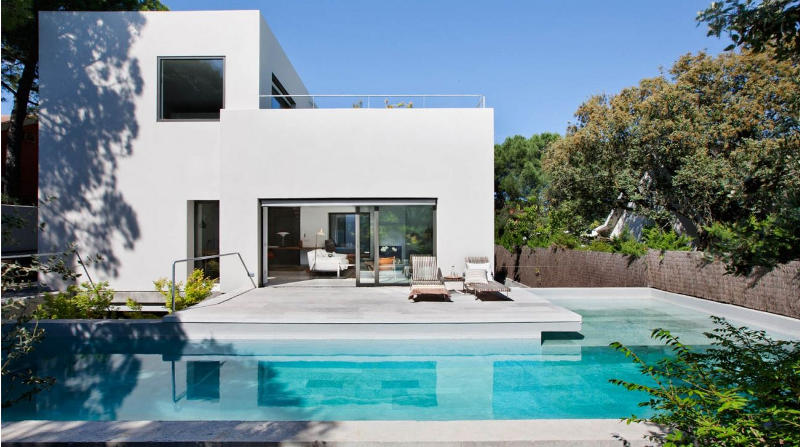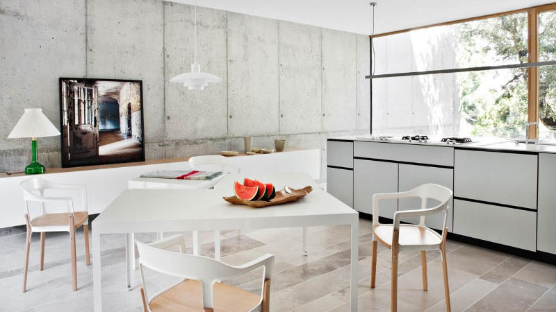 Showroom and workplace, home and office. Spanish architectural, property development and construction firm Ábaton live what they preach. Not hard to live like this though. Located on the outskirts of Madrid the building’s clean, modern lines with white walls and concrete floors are layered with furnishings and textures that add meaning and beauty. You loved their converted barn (here) and I know you’ll love this wonderful home too.
