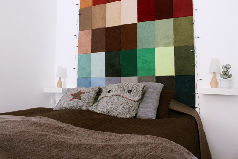 Lovely-small, but still it seems very open. Love the headboard idea-very creative indeed.