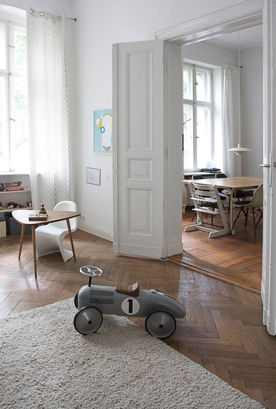 LOVE the following home sent in to us by Martin: We recently moved to berlin to continue our studies in architecture. We’re obviously interested in scandinavian design and since we moved here I have the feeling we changed the interior every month. If I should describe our style I would say it’s a good mixture of vintage classics and some modern stuff. As we have a three year old son the apartments interior is quite functional. Martin, Julia and Noah share this space, and I love how classically mid-century it is, with just the right amount of minimalism to make it homey but not stark. When you have great furnishings, sometimes less is more to really showcase the pieces. It frankly makes me want to purge.