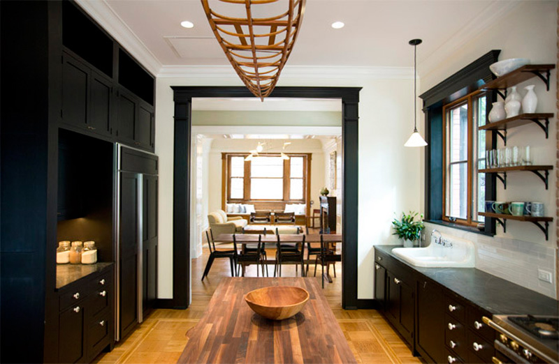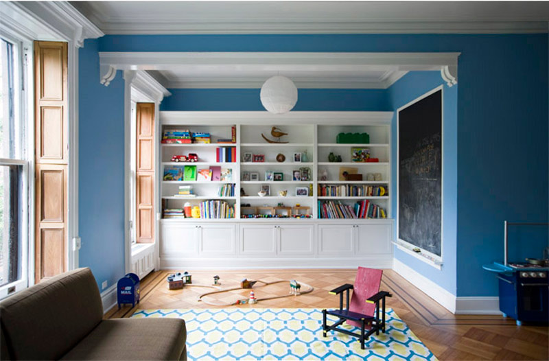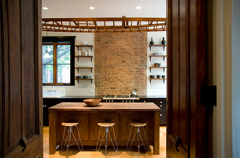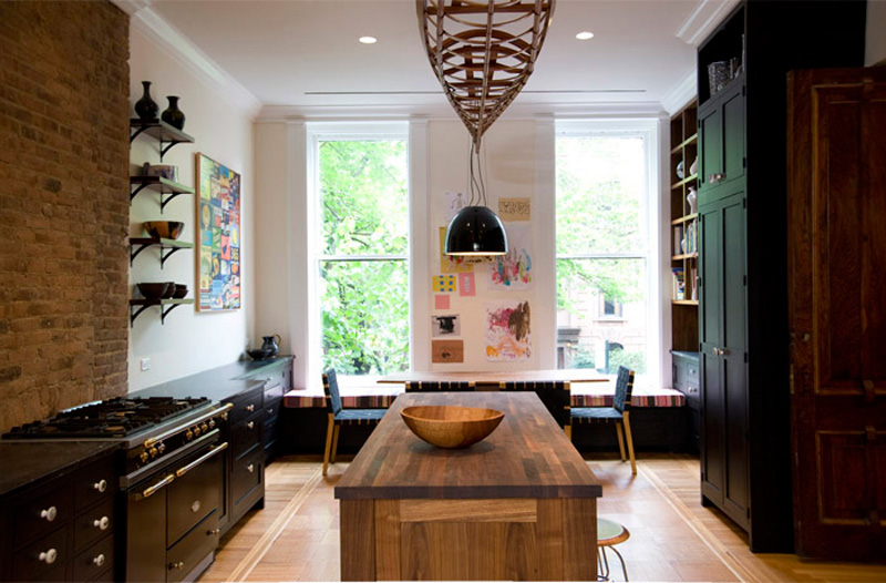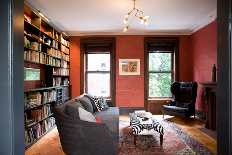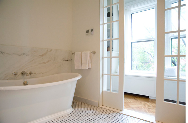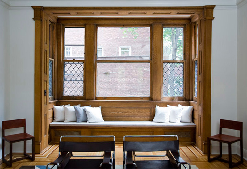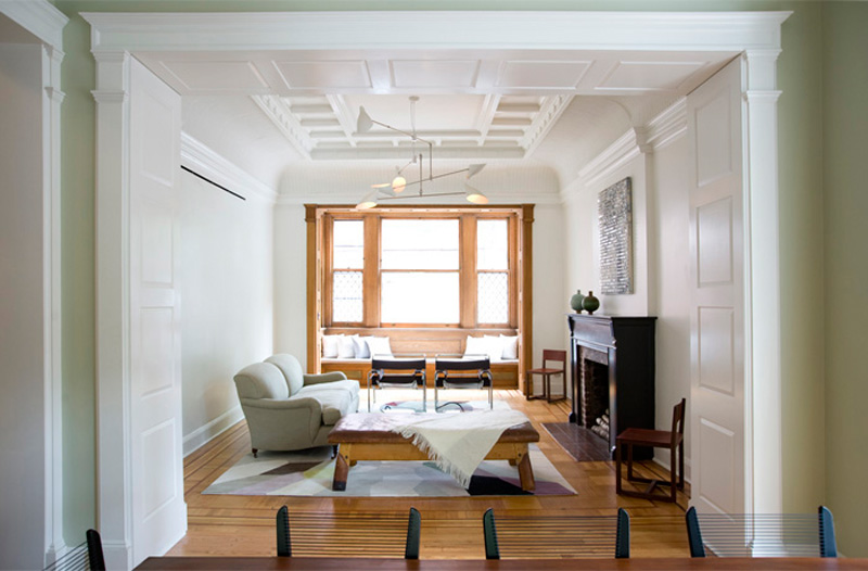 New York based architectural designer Elizabeth Roberts has a couple new projects in her portfolio that I had to share with you today. This first one is incredible – I love every inch of it and how she maintained so much of the original home in final updated design. Here are some details of the work involved: The Sargisson-Robbins Residence is a prominent, corner building in the heart of the historic district of Park Slope, Brooklyn. The house was reconfigured from a duplex apartment and 2 single floor apartments (3 family) with Dr’s office at the basement into a 4 story residence with an apartment (2 family) and a Dr’s office at the Garden Level. Throughout the house existing trim and doors were removed, revised, stripped and reinstalled –often times in new locations. Work on the Parlor Level included new circulation created by the removal of a non-original stair and the opening of a structural wall , a larger kitchen that was created by removing several walls, new millwork was installed throughout, extensive stripping of historic woodwork, a new door and steel stair to access the rear garden and the installation of 4 large, salvaged historic pocket doors with trim to match existing. Renovations on the 2nd Floor included extensive work to create new circulation through a central Music Room to access a large Playroom at the front of the building and a Library at the rear. New custom millwork on this level included storage in the Playroom, a Playroom work sink area, and a bar beside the Library. The 3rd Floor was reconfigured to become a large Master Suite with a rear and front bedroom connected through a Master Bath and Closet Hall. Historic tile was removed and reinstalled with new plumbing and fixtures intact at the accessory bath on this level. A large laundry area on this level is accessed to the bedroom level above with a new laundry chute created in existing millwork located in the hall. Renovations to the 4th Floor included new doors and trim, new wainscoting along perimeter walls, a new double sink bathroom and adjacent urinal room accessed through a swinging saloon door. Brick was exposed on the stair wall and the floors were sanded and sealed to create 3 bedrooms and a home office.