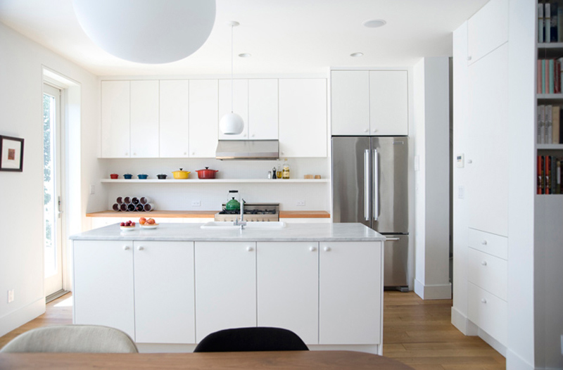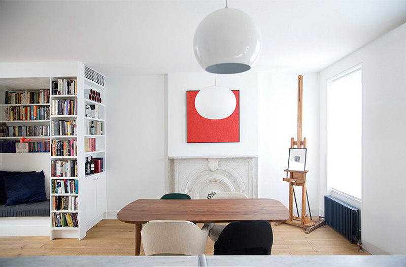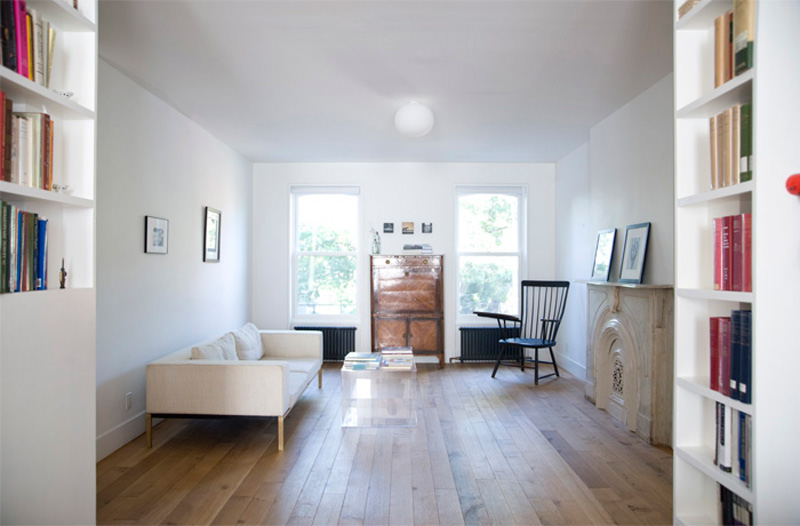Here is another project by architectural designer Elizabeth Roberts. My favourite element is the little reading nook. Cute!! The Fort Greene Townhouse is located in the Historic District of Fort Greene, Brooklyn. The renovation created 2 separate duplex apartments for the 2 families who purchased the building together. A family member designed the lower level duplex. Elizabeth Roberts Design designed the upper level duplex creating 3 bedrooms, 2 bathrooms, 2 private offices, a kitchen patio overlooking the garden and a new roofdeck accessed through a new stair to the roof.